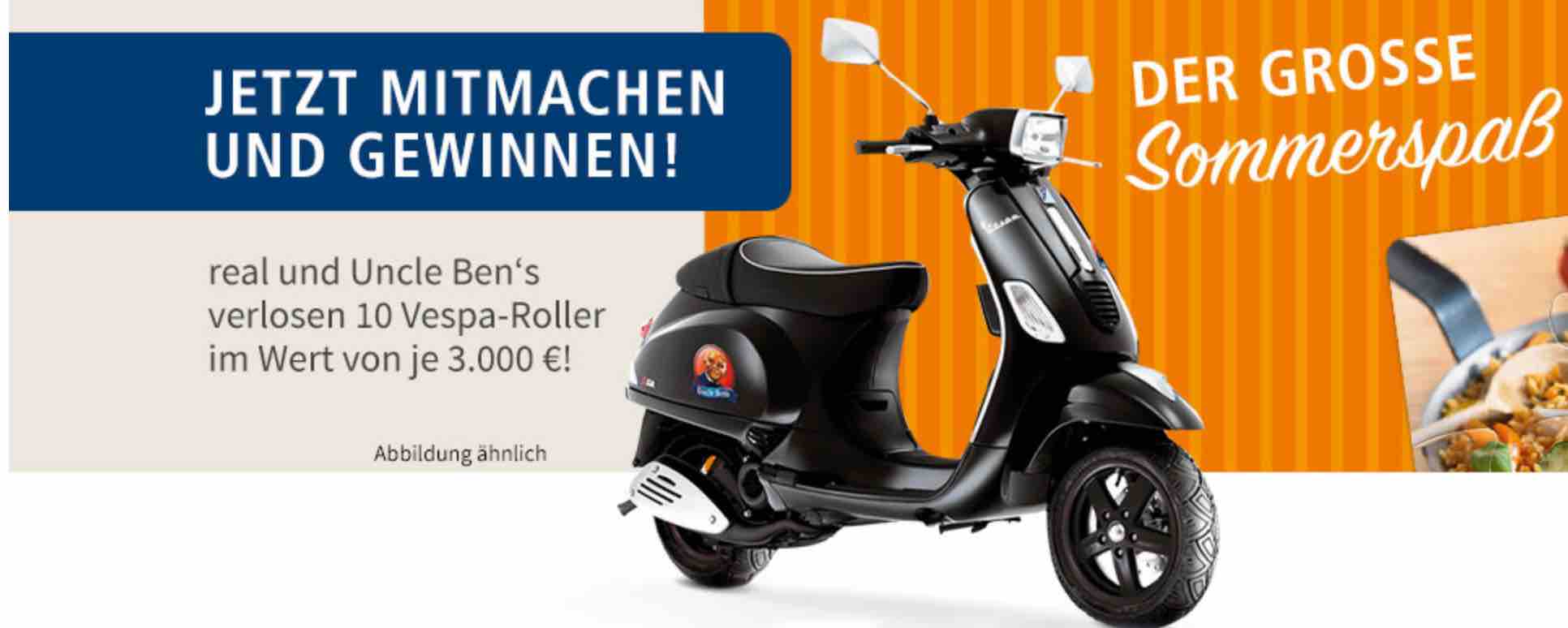 Du kannst jetzt bei dem aktuellen Gewinnspiel von Real und Uncle Ben´s einen brandneuen Vespa-Roller gewinnen!
